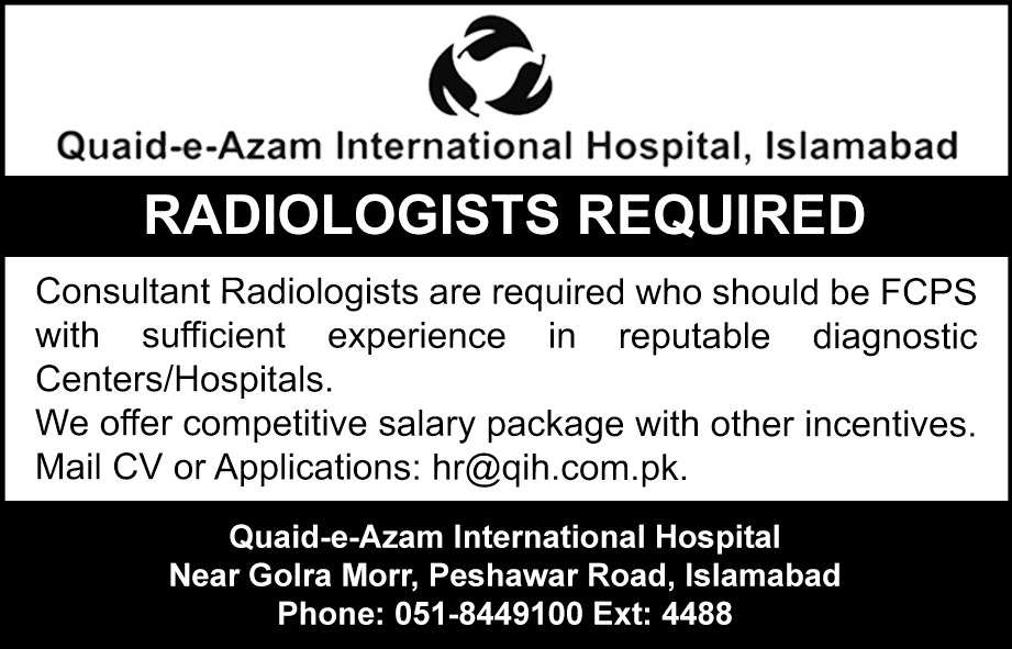 Quaid-e-Azam International Hospital invites applications for the position of Radiologist.